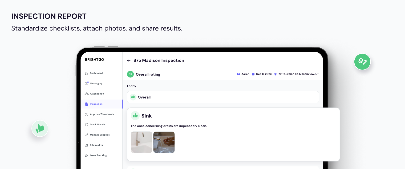 BrightGo’s janitorial inspection software changed that by ensuring: